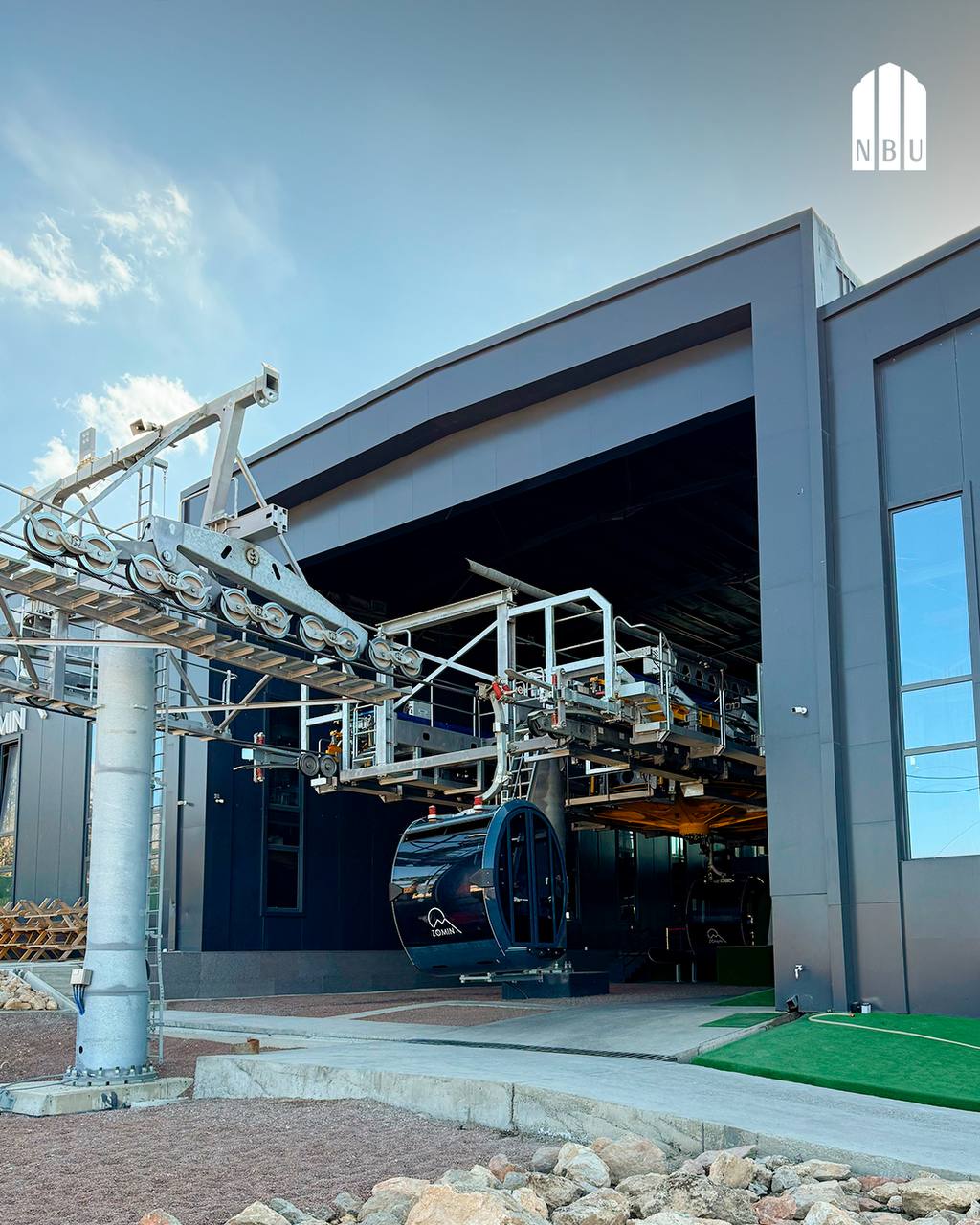 - Нижняя станция оснащена парковкой на 351 место, фастфудом и детской площадкой.